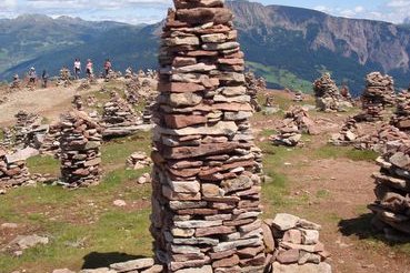 Unzählige aus Stein geschichtete „Männchen“ – die stoanernen Mandeln – trotzen hier Wind und Wetter. Die Ursprünge gehen mit großer Wahrscheinlichkeit auf die Steinzeit zurück und der geheimnisvolle Zauber, der von diesen Steinmännchen ausgeht ist einzigartig. Ursprünglich dienten die „stoanernen Mandln“ als Wegweiser im Gebirge, doch die große Anzahl dieser steinernen Figuren, wie man sie im Sarntal findet, ist eine Seltenheit. In den letzten Jahren haben auch viele Wanderer eigene kleine Stoanmandln aus flachen Steinen aufgeschichtet.