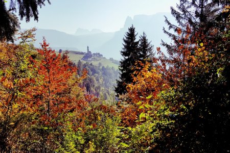 Sehen Sie das herrliche Panorama der Südtiroler Bergwelt und das bunte Farbenspiel der herbstlichen Natur.